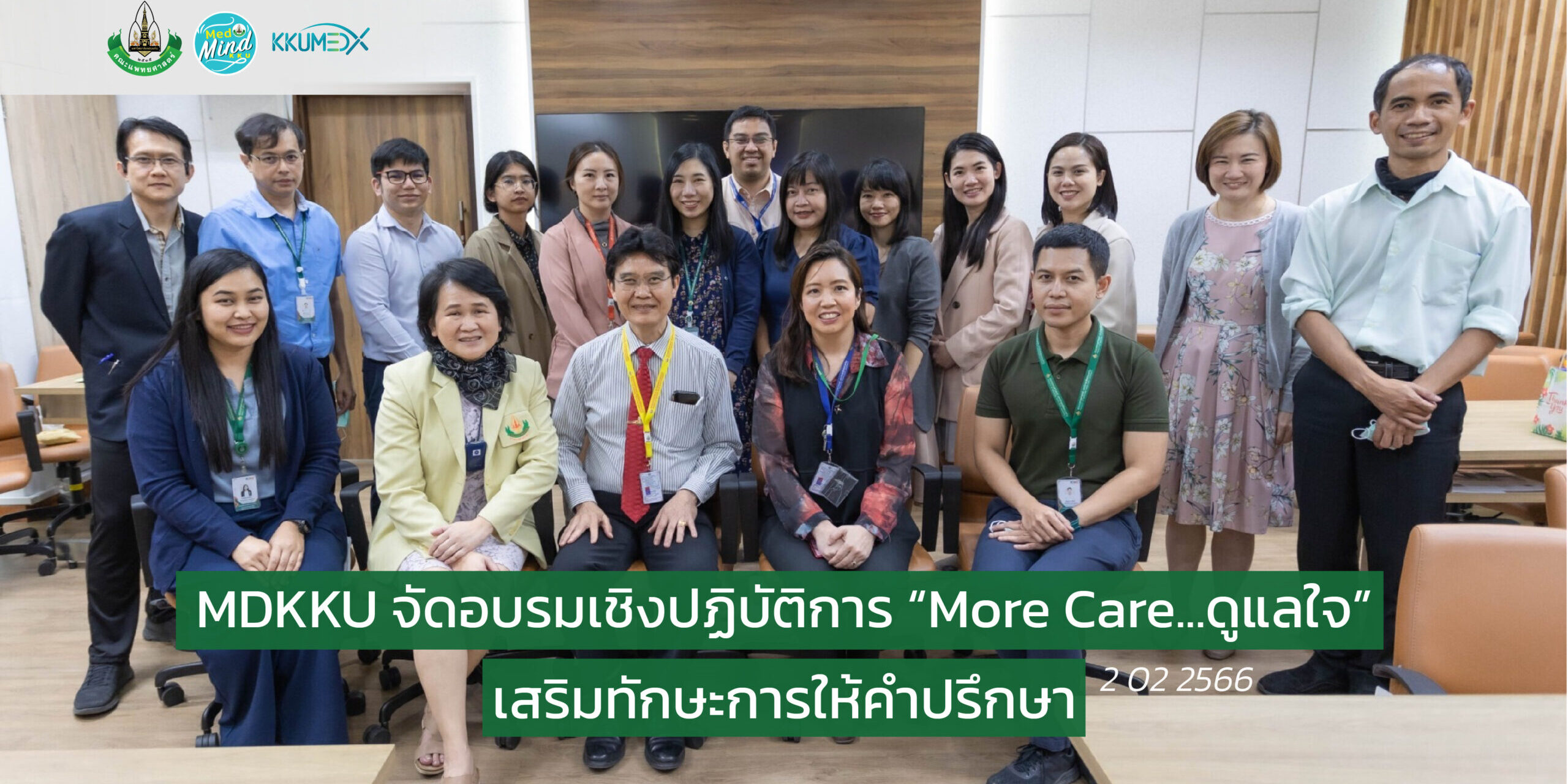 2 กุมภาพันธ์ 2566 (13.00 น.) คณะแพทยศาสตร์ ม.ขอนแก่น โดยฝ่ายวิชาการ จัดโครงการอบรมเชิงปฏิบัติการ :“การให้คำปรึกษา More Care…ดูแลใจ” เพื่อส่งเสริมบุคลากรเครือข่ายด้านการดูแลนักศึกษา ให้มีทักษะความพร้อมและเทคนิคการให้คำปรึกษาด้านสุขภาพจิตแก่นักศึกษา คณะแพทยศาสตร์ มหาวิทยาลัยขอนแก่น โดยมี รศ.พญ.กมลวรรณ เจนวิถีสุข รองคณบดีฝ่ายวิชาการ รศ.นพ.สุรพล วีระศิริ ที่ปรึกษาฝ่ายวิชาการ อ.พญ.สริตา พานทองวิริยะกุล จิตแพทย์ ศูนย์ความเป็นเลิศและศูนย์กลางบริการสุขภาพ น.ส.ชณัติพร ชลไพร นักจิตวิทยาคลินิกชำนาญการ สาขาวิชาจิตเวชศาสตร์ นายหัฎฐกร สำเร็จดี นักจิตวิทยาคลินิกปฏิบัติการ สาขาวิชาจิตเวชศาสตร์ และ น.ส.มาลิสา การประกอบ นักจิตวิทยา ฝ่ายวิชาการ คณะแพทยศาสตร์ ร่วมเป็นวิทยากรดำเนินกิจกรรม