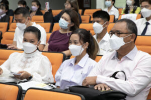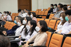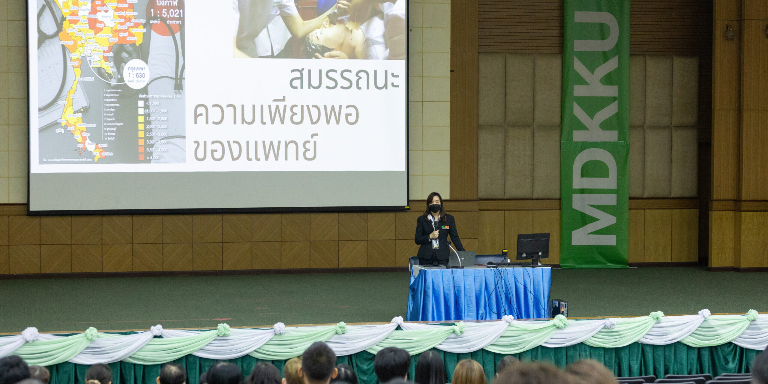 รศ.พญ.กมลวรรณ เจนวิถีสุข รองคณบดีฝ่ายวิชาการ กล่าวต้อนรับนักศึกษาและผู้ปกครอง พร้อมด้วย รศ.นพ.สุรพล วีระศิริ ที่ปรึกษาฝ่ายวิชาการ รศ.นพ.อนุพล พาณิชย์โชติ ผู้ช่วยฝ่ายวิชาการ ผศ.ดร.วันชนะ สืบไวย ผู้ช่วยฝ่ายศูนย์ความเป็นเลิศและศูนย์กลางบริการสุขภาพ อ.ดร.ศุภโชค สอนศิลพงศ์ อาจารย์ประจำหลักสูตรวิชาวิทยาการข้อมูลและสารสนเทศสุขภาพ นพ.ธนภพ ณ นครพนม อาจารย์ประจำหลักสูตรวิชาวิทยาการข้อมูลและสารสนเทศสุขภาพ และนางพวงพยอม แก้วพิลา หัวหน้างานบริการการศึกษา และคณะทำงาน ฝ่ายวิชาการ คณะแพทยศาสตร์ มหาวิทยาลัยขอนแก่น โดยแพทยศาสตรบัณฑิต โครงการอบรมหลักสูตรแพทย์ 2 ปริญญา ประกอบไปด้วย 1. แพทยศาสตรบัณฑิต หลักสูตรวิทยาศาสตรมหาบัณฑิต สาขาการบริหารโรงพยาบาล 2. แพทยศาสตรบัณฑิต หลักสูตรวิทยาศาสตรมหาบัณฑิต สาขาวิทยาการข้อมูลและสารสนเทศสุขภาพ พร้อมแนะนำภาพรวมการเรียนการสอนทั้ง 2 หลักสูตร ณ ห้องประชุมมอดินแดง ชั้น 3 อาคารเรียนรวม