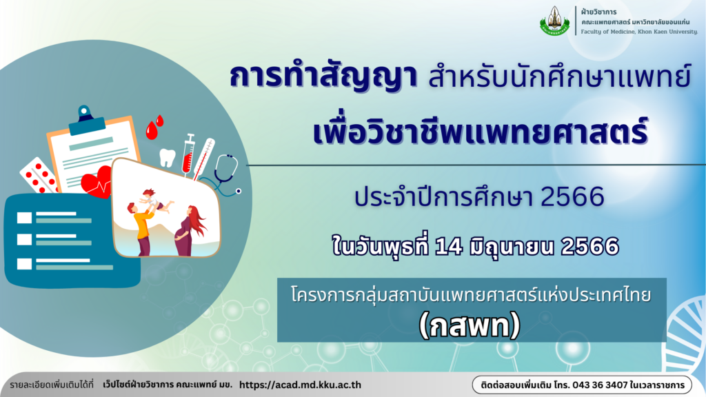 รายละเอียดการทำสัญญาการเป็นนักศึกษา หลักสูตรแพทยศาสตรบัณฑิต ประจำปี 2566
