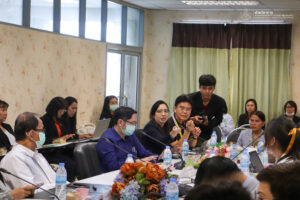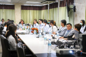 ในการประชุมหารือในครั้งนี้ เพื่อแลกเปลี่ยนความรู้และประสบการณ์ และความร่วมมือ ด้วยการแพทยศาสตรศึกษา การวิจัยและนวัตกรรม และพัฒนาหลักสูตรการเรียนการสอนร่วมกัน งานกิจกรรมนักศึกษา งาน Skill lab CLS งานบริหารจัดการห้องประชุม ห้องเรียน และหอพักเยี่ยมชม ศูนย์แพทยศาสตรศึกษาชั้นคลินิก โรงพยาบาลมหาสารคาม