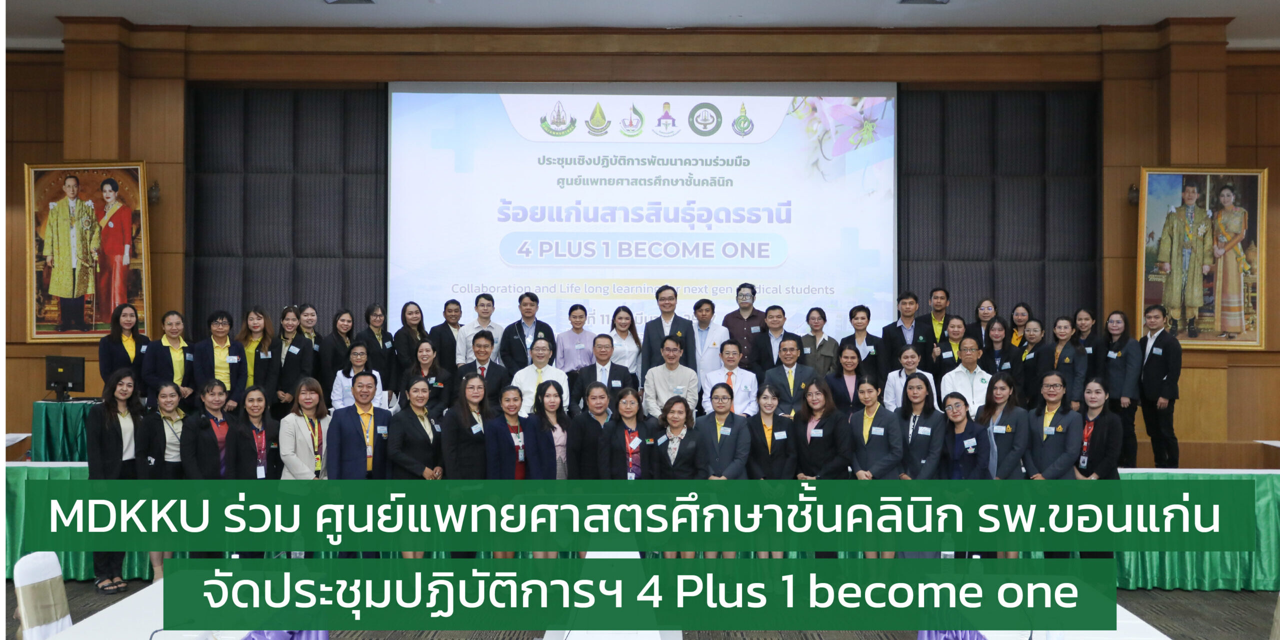 วันที่ 11-12 มีนาคม 2567 ที่ผ่านมา คณะแพทยศาสตร์ มหาวิทยาลัยขอนแก่น ร่วมกับ ศูนย์แพทยศาสตรศึกษาชั้นคลินิก โรงพยาบาลขอนแก่น จัดประชุมปฏิบัติการพัฒนาความร่วมมือศูนย์แพทยศาสตรศึกษาชั้นคลินิก ร้อยแก่นสารสินธุ์อุดรธานี (4 Plus 1 become one) โดยมี รศ.นพ.อภิชาติ จิระวุฒิพงศ์ คณบดีคณะแพทยศาสตร์ มหาวิทยาลัยขอนแก่น กล่าวต้อนรับผู้บริหารและคณะทำงานจากศูนย์แพทยศาสตรศึกษาชั้นคลินิก พร้อมด้วย นพ.ปกรณ์ นาระคล ผู้อำนวยการศูนย์แพทยศาสตรศึกษาชั้นคลินิก โรงพยาบาลขอนแก่น กล่าวรายงานภาพรวมการจัดประชุมปฏิบัติการพัฒนาความร่วมมือศูนย์แพทยศาสตรศึกษาชั้นคลินิกในครั้งที่ผ่านมาและได้รับเกียรติจาก นพ.ธนรักษ์ ผลิพัฒน์ ผู้ตรวจราชการ เขตสุขภาพที่ 7 กระทรวงสาธารณสุข เป็นประธานกล่าวเปิดการประชุมและบรรยายพิเศษในหัวข้อ Collaboration and Life Long Learning for next fen medical students พร้อมด้วย รศ.นพ.สุรพล วีระศิริ ที่ปรึกษาฝ่ายวิชาการ รศ.พญ.กมลวรรณ เจนวิถีสุข รองคณบดีฝ่ายวิชาการ รศ.ดร.พญ.อิสราภรณ์ เทพวงษา ผู้ช่วยคณบดีฝ่ายวิชาการ ผศ.พญ.พัชรีภรณ์ ตันมิ่ง ผู้ช่วยฝ่ายวิชาการและผู้บริหารคณะแพทยศาสตร์ มหาวิทยาลัยขอนแก่น ให้การต้อนรับผู้บริหารและคณะทำงานจากศูนย์แพทยศาสตรศึกษาชั้นคลินิก ประกอบไปด้วย นพ.เกรียงศักดิ์ วัชรนุกูลเกียรติ ผู้อำนวยการโรงพยาบาลขอนแก่น ผศ.นพ.เทพลักษ์ ศิริธนะวุฒิชัย คณบดีคณะแพทยศาสตร์ มหาวิทยาลัยมหาสารคาม พญ.เบญจมาศ ดวงคำน้อย ผู้อำนวยการศูนย์แพทยศาสตรศึกษาชั้นคลินิก โรงพยาบาลมหาสารคาม นพ.ปิยบุตร เถาว์ทิพย์ ผู้อำนวยการศูนย์แพทยศาสตรศึกษาชั้นคลินิก โรงพยาบาลร้อยเอ็ด พญ.สกุลรัตน์ ศรีโรจน์ ผู้อำนวยการศูนย์แพทยศาสตรศึกษาชั้นคลินิก โรงพยาบาลกาฬสินธุ์ นพ.โอฬาร วิวัฒนาช่าง ผู้อำนวยการศูนย์แพทยศาสตรศึกษาชั้นคลินิก โรงพยาบาลอุดรธานี การประชุมจัดขึ้นระหว่างวันที่ 11-12 มีนาคม 2567 ณ ห้องประชุมมิตรภาพ
