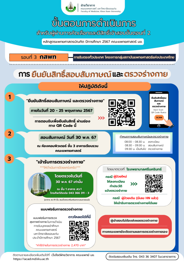 การยืนยันการสอบสัมภาษณ์ และตรวจร่างกาย โครงการกลุ่มสถาบันแพทยศาสตร์แห่งประเทศไทย (กสพท) ประจำปีการศึกษา 2567