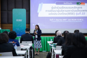 - การบรรยายหัวข้อ “การบริหารจัดการการศึกษาหลักสูตรแพทยศาสตรบัณฑิต” โดย รศ.พญ.กมลวรรณ เจนวิถีสุข ประธานหลักสูตรแพทยศาสตรบัณฑิต