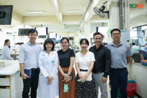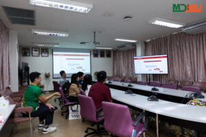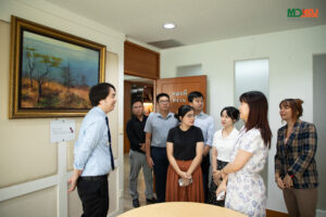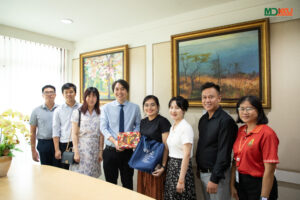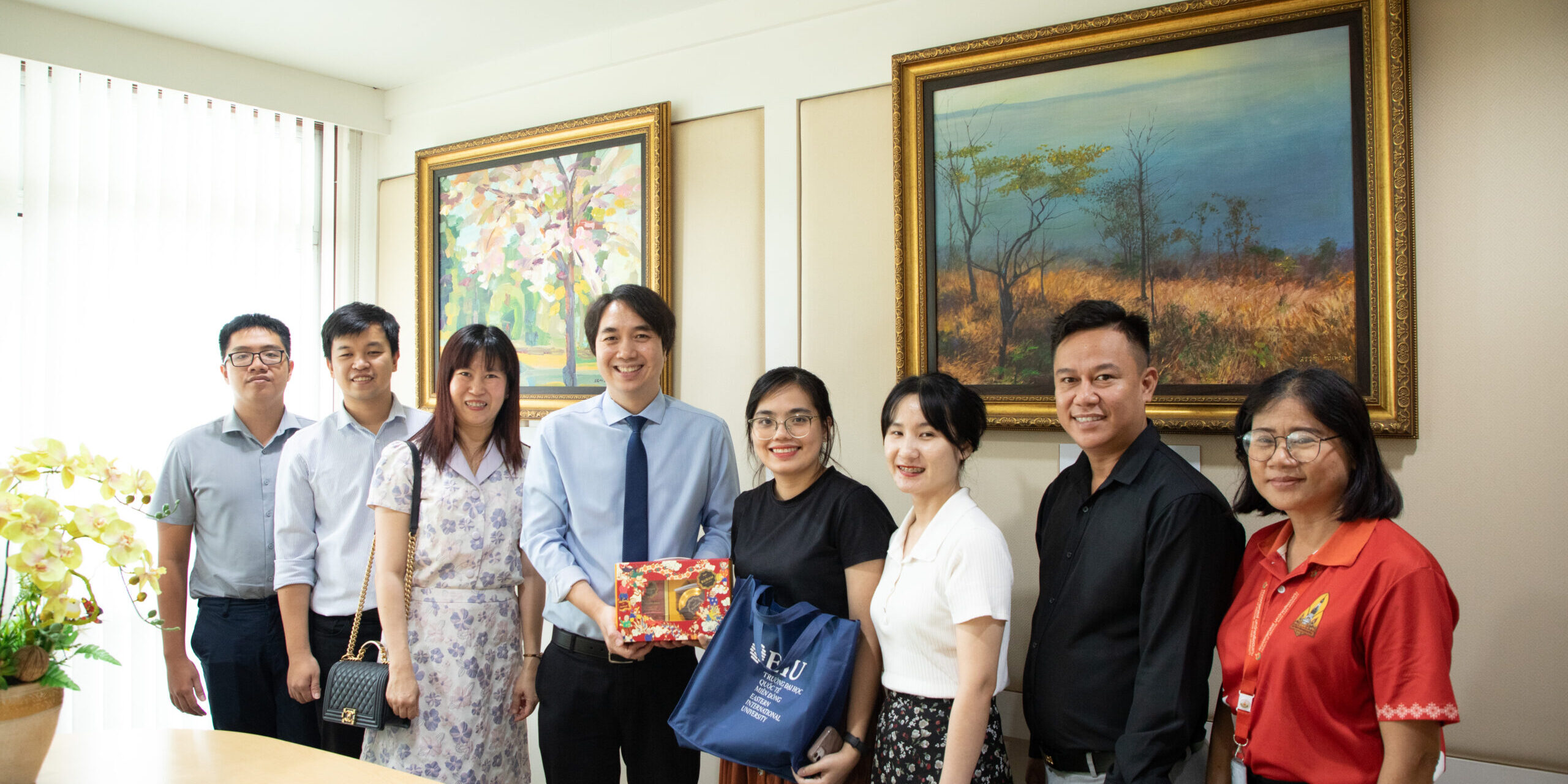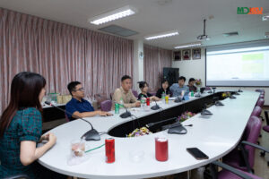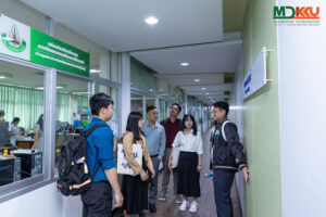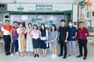 (9 ก.ค. 2567) คณะแพทยศาสตร์ มหาวิทยาลัยขอนแก่น โดย อ.พญ.นันทพร วงศ์สุริวัฒน์ ผู้ช่วยคณบดีฝ่ายวิชาการ นางพวงพยอม แก้วพิลา หัวหน้างานบริการการศึกษา นางดวงกมล ศรีสวัสดิ์ หัวหน้าสำนักวิเทศสัมพันธ์ คณะแพทยศาสตร์ มหาวิทยาลัยขอนแก่นและคณะทำงานฝ่ายวิชาการ ฝ่ายวิเทศสัมพันธ์และสื่อสารองค์กร ร่วมต้อนรับผู้แทนจาก Eastern International University ประเทศสาธารณรัฐสังคมนิยมเวียดนาม โครงการศึกษาดูงาน “การจัดการห้องปฏิบัติการพรีคลินิกและจำลองสำหรับนักศึกษาแพทย์” กิจกรรมแลกเปลี่ยน เรียนรู้และสร้างความสัมพันธ์อันดีกับสถาบันต่างประเทศ ระหว่างวันที่ 8 – 12 กรกฎาคม พ.ศ. 2567 ณ อาคารเรียนรวมและอาคารเตรียมวิทยาศาสตร์ คณะแพทยศาสตร์ มหาวิทยาลัยขอนแก่น