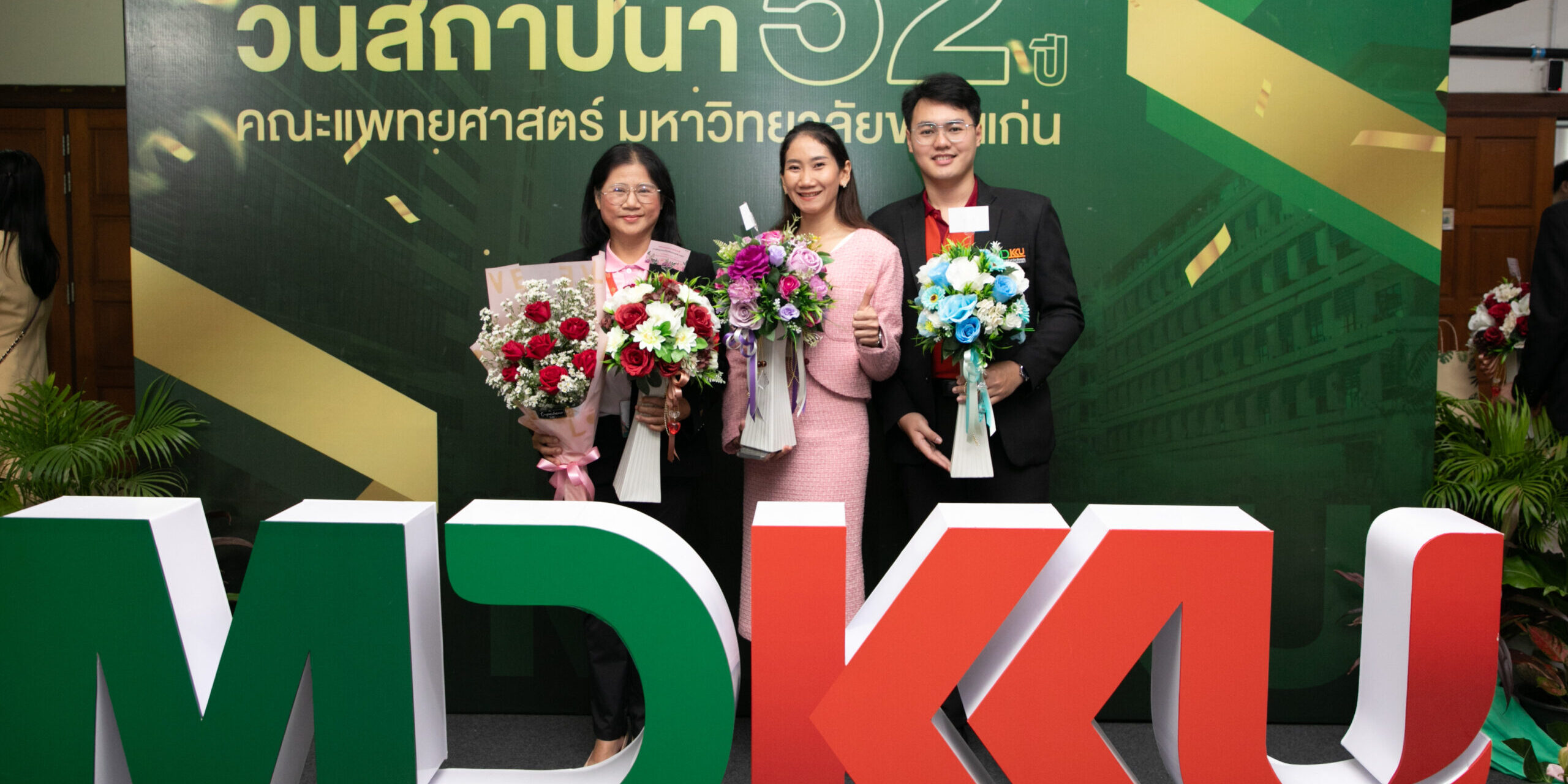 (9 ก.ย. 67) คณะแพทยศาสตร์ มหาวิทยาลัยขอนแก่น จัดพิธีทำบุญครบรอบวันสถาปนาแห่งการก่อตั้ง คณะแพทยศาสตร์ มหาวิทยาลัยขอนแก่น 52 ปี เพื่อความเป็นสิริสวัสดิ์พิพัฒนมงคล และอุทิศส่วนบุญกุศลแก่ปูชนียาจารย์ บุคลากรและผู้มีคุณูปการต่อกิจการคณะแพทยศาสตร์ที่วายชนม์ และจัดพิธีประกาศเกียรติคุณ และกล่าวแสดงความชื่นชมยินดี มอบเกียรติบัตรผู้ทำคุณประโยชน์ต่อคณะแพทยศาสตร์ และจิตอาสา มอบช่อดอกไม้แก่บุคคลเกียรติยศ และมอบโล่ประกาศเกียรติคุณผู้ปฏิบัติราชการครบ 25 ปี โดยได้รับเกียรติจาก รศ.นพ.ภัทรพงษ์ มกรเวส คณบดีคณะแพทยศาสตร์ มข. เป็นประธานในพิธี โดยมีผู้บริหารและบุคลากร ฝ่ายวิชาการ คณะแพทยศาสตร์ มหาวิทยาลัยขอนแก่น ได้รับรางวัลบุคคลเกียรติยศ ได้แก่