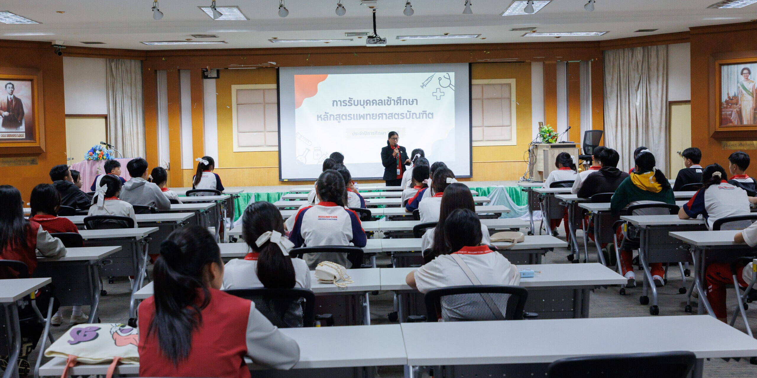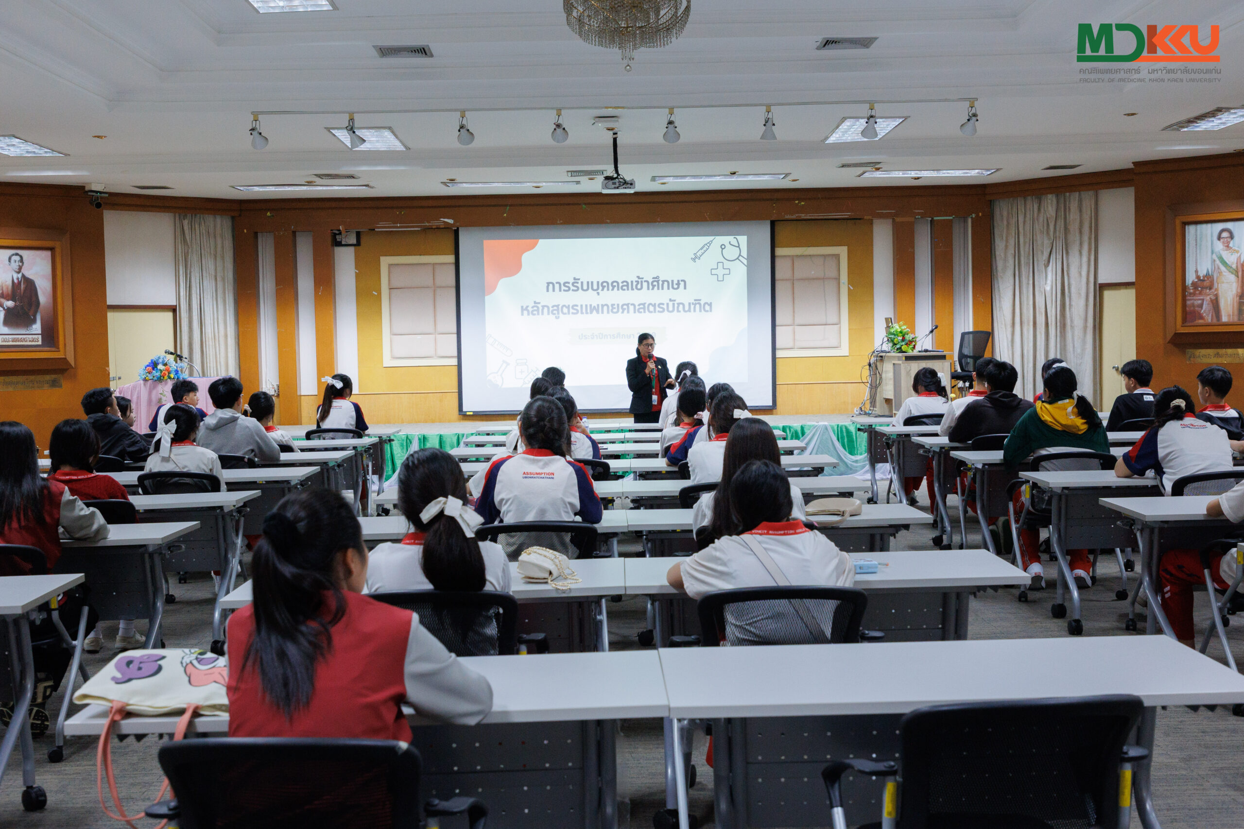 (7 ตุลาคม 2568) ฝ่ายวิชาการ โดยนางพวงพยอม แก้วพิลา หัวหน้างานบริการการศึกษาและคณะทำงาน พร้อมด้วยฝ่ายประชาสัมพันธ์ คณะแพทยศาสตร์ มหาวิทยาลัยขอนแก่น ให้การต้อนรับคณาจารย์ นักเรียนระดับชั้นมัธยมศึกษาปีที่ 6 โรงเรียนอัสสัมชัญอุบลราชธานี จังหวัดอุบลราชธานี เข้าร่วมกิจกรรมแนะแนวการรับเข้าการศึกษาต่อคณะแพทยศาสตร์ มหาวิทยาลัยขอนแก่น กิจกรรมพบปะพี่นักศึกษาแพทย์ ร เพื่อสร้างแรงบันดาลใจในการเข้าเรียนศึกษาต่อในระดับมหาวิทยาลัย กิจกรรมจัดขึ้น ณ ห้องประชุม 89 พรรษา สมเด็จย่า ชั้น 4