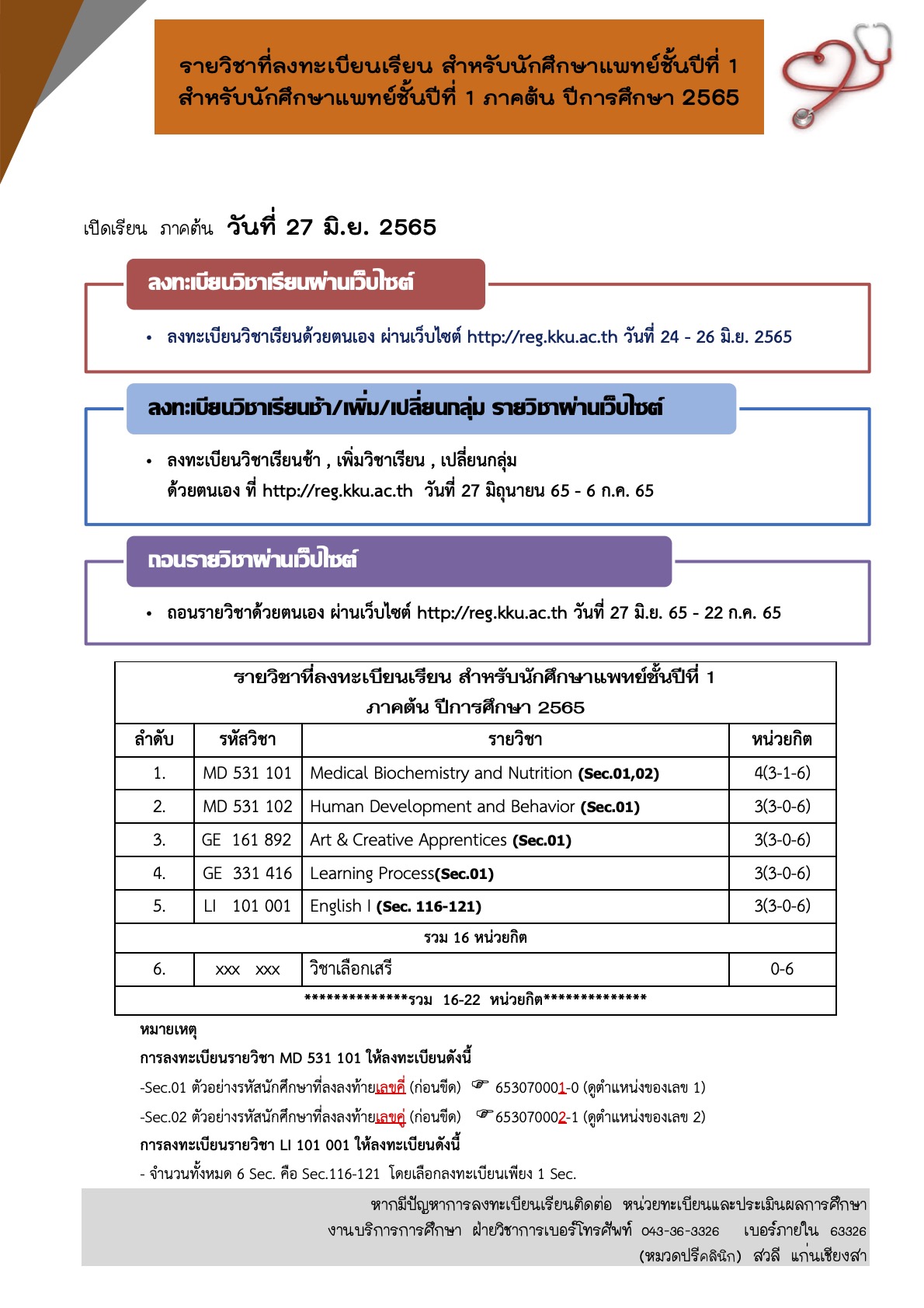[เปลี่ยนแปลง] กำหนดการรับสมัครคัดเลือกบุคคลเข้าศึกษา หลักสูตรแพทยศาสตรบัณฑิต ปีการศึกษา 2569 คณะแพทยศาสตร์ มหาวิทยาลัยขอนแก่นรอบที่ 1 Portfolio8 December 2025