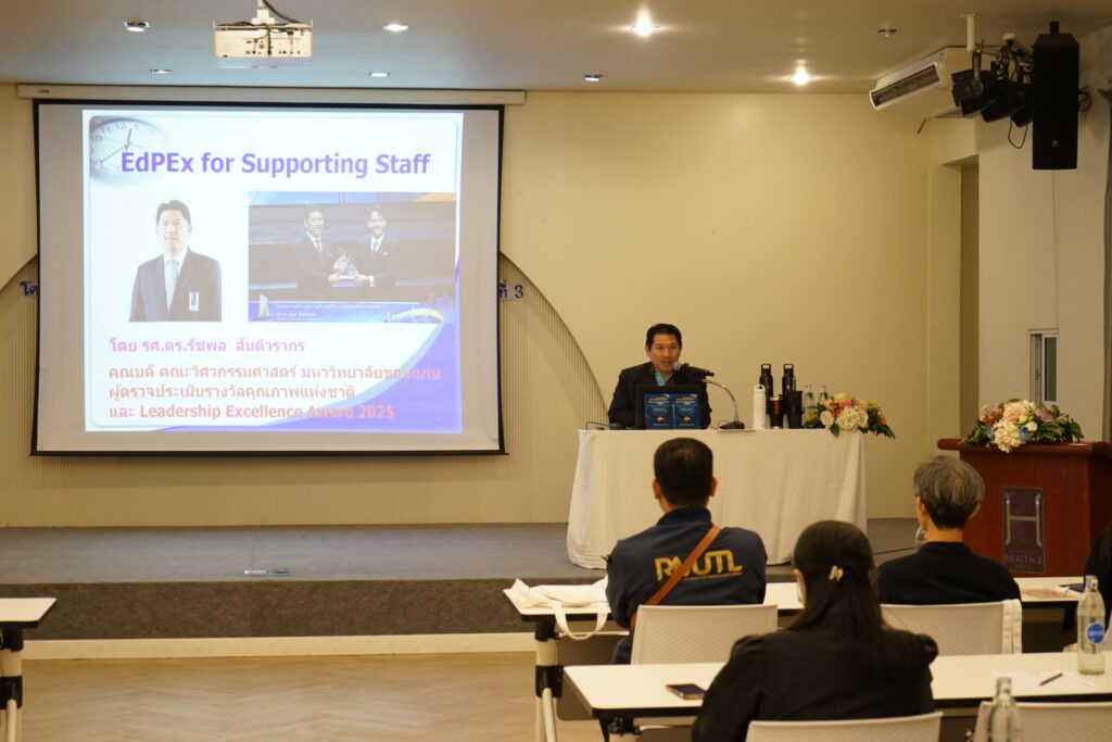 1 ธันวาคม2568 บุคคลากรสายสนันฝ่ายวิชาการ คณะแพทยศาสตร์ มหาวิทยาลัยขอนแก่น เข้าร่วมอบรม หลักสูตร “EdPEx for Supporting Staff : ESS รุ่นที่ 3” หลักสูตรแนวทางการขับเคลื่อนองค์กรสู่ความเป็นเลิศ ยกระดับการทำงานขององค์กร (Education Criteria for Performance Excellence – EdPEx) วิทยากรดำเนินบรรยายโดย รศ.ดร.รัชพล สันติวรากร คณบดีคณะวิศวกรรมศาสตร์ มหาวิทยาลัยขอนแก่น ผู้ตรวจประเมินรางวัลคุณภาพแห่งชาติ และ Leadership Excellent Award 2025 หัวข้อบรรยายประกอบด้วย ความสำคัญและความคิดรวบยอดของ EdPEx, บทบาทของสายสนับสนุนในการขับเคลื่อนองค์กร, เครื่องมือสำคัญที่ช่วยเพิ่มประสิทธิผลการทำงาน, EdPEx กับเส้นทางความก้าวหน้าในสายอาชีพ, เทคนิคที่สายสนับสนุนต้องรู้ เพื่อให้องค์กรประสบความสำเร็จ