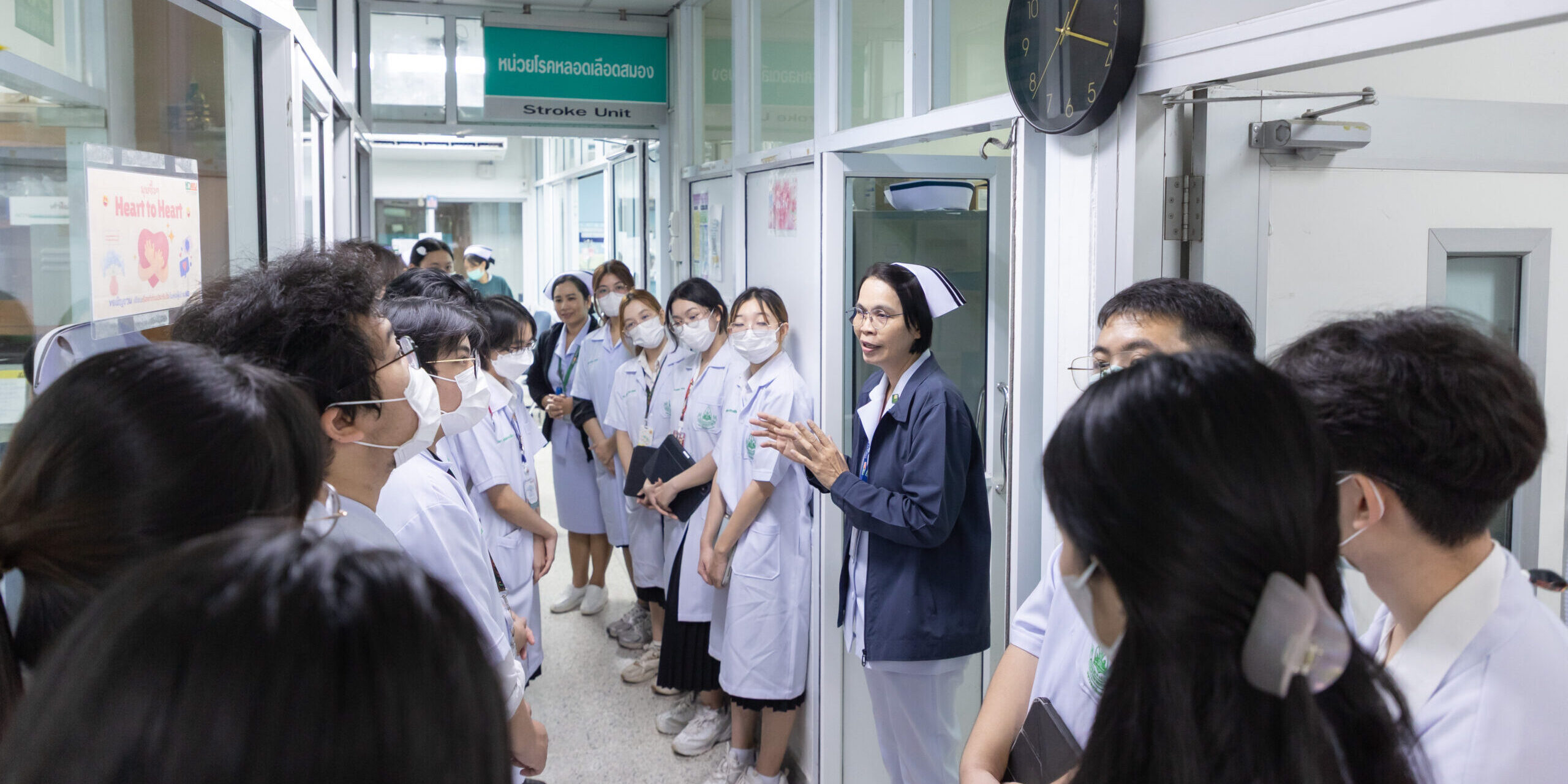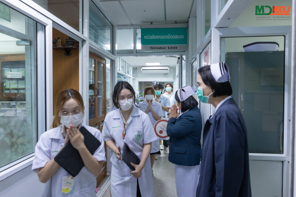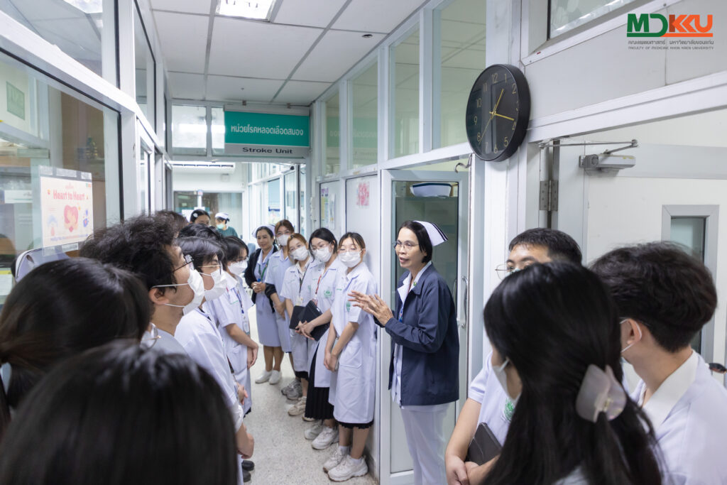 (11 ธันาคม 2568) หลักสูตรแพทยศาสตรบัณฑิต คณะแพทยศาสตร์ มหาวิทยาลัยขอนแก่น ให้ นศ.พ. ชั้นปีที่ 2 ช่วงชั้นปรีคลินิก ลงพื้นที่ศึกษาหน่วยงานต่าง ๆ เชื่อมโยงรายวิชา ระบบประสาท (Nervous System) พร้อมฝึก Clinical Skill การสอบถามผู้ป่วย การซักประวัติผู้ป่วย การแนะนำผู้ป่วย ด้วยการดูแล แนะนำจากอาจารย์ประจำรายวิชาและ Teacher Assistant
