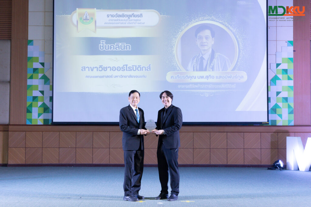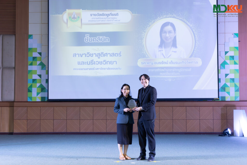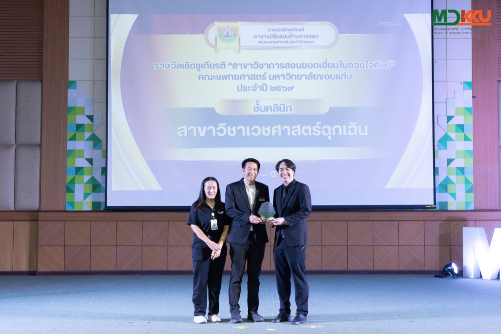 (15 มกราคม 2569) คณะแพทยศาสตร์ มหาวิทยาลัยขอนแก่น จัดพิธีมอบรางวัลเชิดชูเกียรติอาจารย์ต้นแบบคณะแพทยศาสตร์ ด้านการสอน ประจำปี 2569 เพื่อยกย่องเชิดชู “ครู” ที่ส่งต่อพลังอันยิ่งใหญ่ สร้างสรรค์สิ่งดีงามและเป็นรากฐานสำคัญในการผลิตบัณฑิตแพทย์