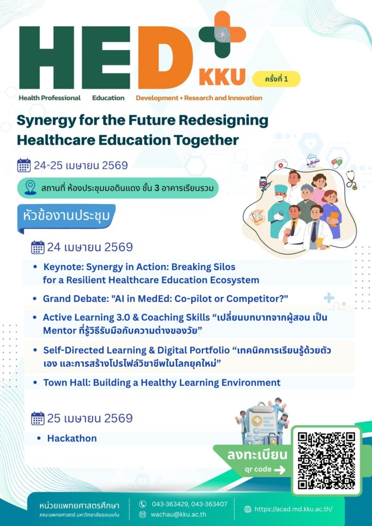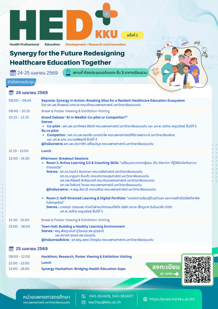 👉 24-25 เมษายน 2569 ณ ห้องประชุมมอดินแดง ชั้น 3 อาคารเรียนรวม คณะแพทยศาสตร์ มหาวิทยาลัยขอนแก่น