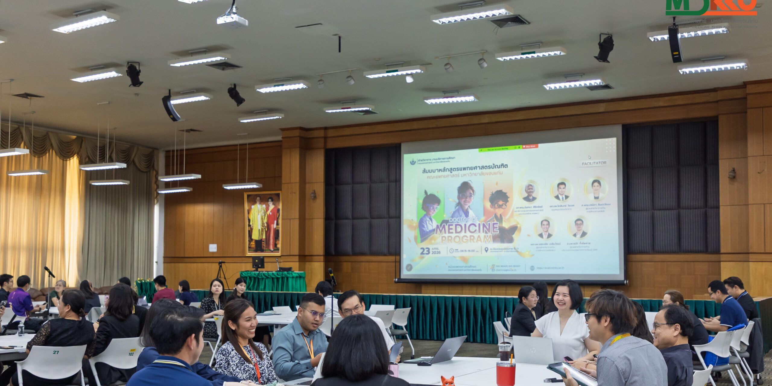 23 เม.ย. 2569 คณะแพทยศาสตร์ มหาวิทยาลัยขอนแก่น โดยฝ่ายวิชาการ จัดสัมมนาหลักสูตรแพทยศาสตรบัณฑิต ประจำปี 2569 กิจกรรมรับฟังความคิดเห็นและข้อเสนอแนะจากคณาจารย์ประจำหลักสูตร คณะแพทยศาสตร์ มหาวิทยาลัยขอนแก่น ศูนย์แพทยศาสตรศึกษาชั้นคลินิก โรงพยาบาลร่วมผลิตฯ นักศึกษาแพทย์และผู้เกี่ยวข้อง เพื่อปรับปรุงหลักสูตร ตอบสนองต่อการเปลี่ยนแปลงให้ดียิ่งขึ้น