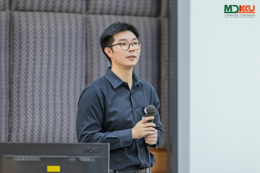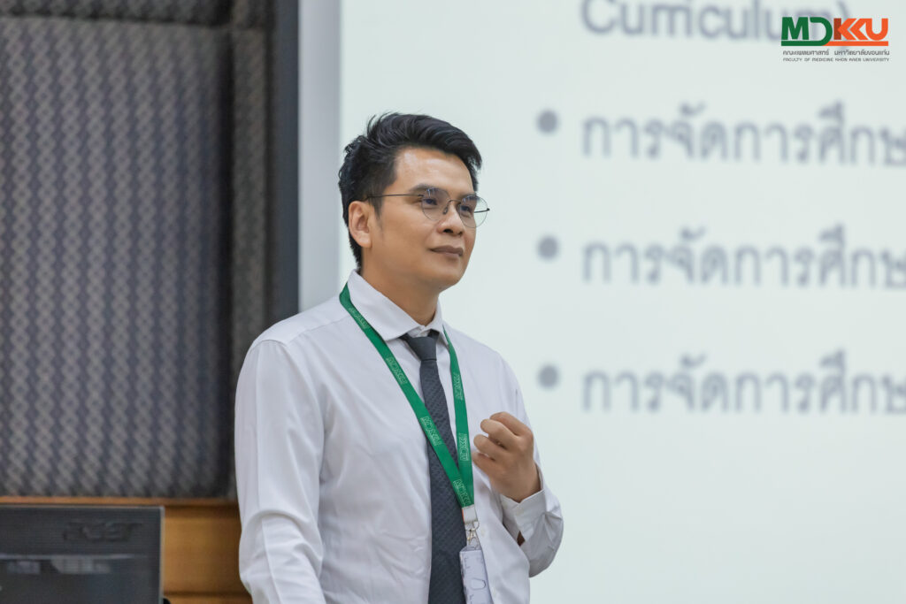 - หัวข้อ แนวทางการบริหารจัดการและพัฒนาหลักสูตรแพทยศาสตรบัณฑิตตามเกณฑ์มาตรฐานสากล วิทยากรโดย รศ.นพ.โกสินทร์ วิระษร รองคณบดีฝ่ายวิชาการ