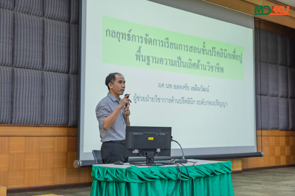 - หัวข้อ กลยุทธ์การจัดการเรียนการสอนชั้นปรีคลินิก เพื่อปูพื้นฐานสู่ความเป็นเลิศทางวิชาชีพ วิทยากรโดย ผศ.ดร.นพ.ฉลองชัย เฉลิมวัฒน์ ผู้ช่วยฝ่ายวิชาการด้านการศึกษาทางปรีคลินิก